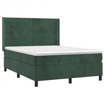 Lit Double Rembourré Sommeil Vert Foncé 140×200 cm – Velours