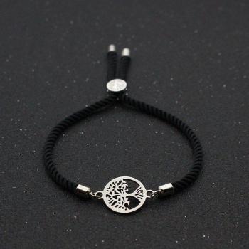 Bracelet en acier inoxydable avec breloques arbre et fleur