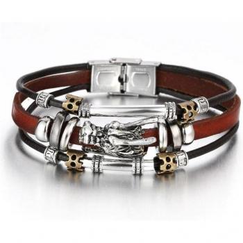Bracelet breloques homme en cuir tressé à plusieurs niveaux