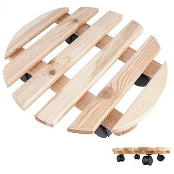 Support à Plantes à Roulettes en Bois Massif - Diamètre 35 cm - Capacité de Charge 80 kg