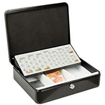 Caisse de sécurité MONEY 5030 L.300xH.90xP.240 mm gris avec clé et compartiments