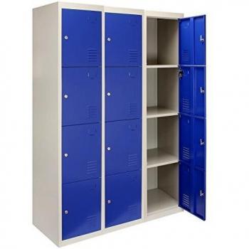 Casier verrouillable en métal 3 x 4 portes bleu et gris