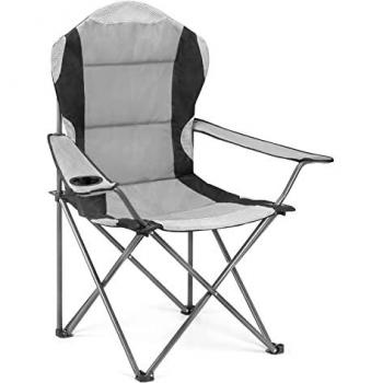 Hyfive Chaise Camping Pliable Gris Rembourrée avec Porte-Gobelet Dossier Haut