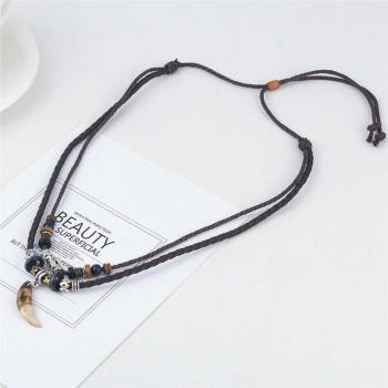 Collier Multicouche avec Pendentif Animal Loup