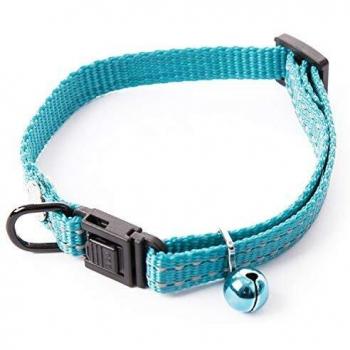 Collier Martin Sellier pour Chat ou Petit Chien en Nylon Haute Qualité avec Coutures Réfléchissantes et Boucle Anti-Étranglement Réglable de 20 à 30cm, y compris le Grelot Bleu