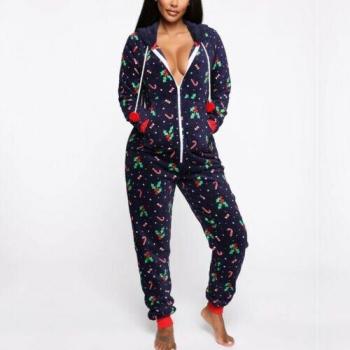 Nouvelles femmes dames noël imprimer Pyjamas à capuche vêtements de nuit de noël combinaison Pyjamas vêtements de nuit hiver