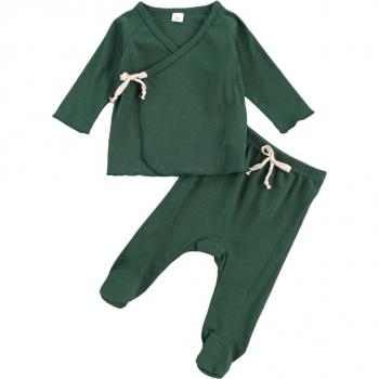 -né bébé deux pièces vêtements de nuit automne costume à manches longues à lacets Cardigan haut avec pied enveloppé pantalons longs vêtements de nuit