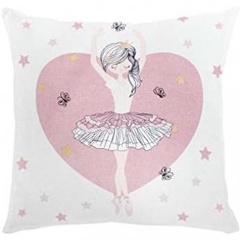 Coussin déhoussable "petite étoile" en coton imprimé métallisé - Rose et Blanc - 40 x 40 cm