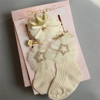 Bandeau floral en tulle et chaussettes en coton pour bébé fille, 4 pièces