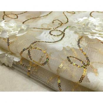 Tissu Pailleté 3D Fleur Applique Brodé Or Blanc Noir 135*100cm