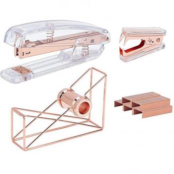 Set Office 4-objets : Ruban, Dégrafeuse, Agrafes (Laiton 24/6)
