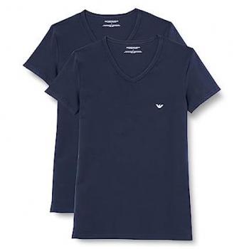 T-shirt Emporio Armani CC717‑111512, coupe moderne, manches courtes, tissu coton stretch multicolore blanc et marine, col en V épuré, respirant, idéal pour un look urbain sophistiqué.