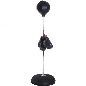 HOMCOM Sac de frappe sur pied réglable en hauteur 126-144 cm avec gants, pompe et base de lestage noir