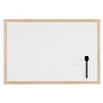 Tableau Blanc Magnétique Bi-Office Budget, 60 x 40 cm, 1 Marqueur et 2 Aimants, Cadre en Bois, Surface en Acier Laqué