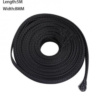 Gaine tressée en polyester noir avec fils blancs, isolant et protecteur pour faisceaux de câbles. Flexible et résistante à l’abrasion, elle s’installe facilement grâce au système Twist-In-FR 25, diamètre 19–25 mm.