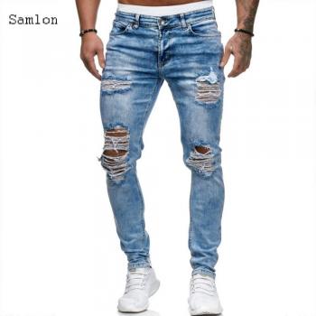 Offre spéciale hommes déchiré jean pantalon Biker maigre mince droit effiloché Denim pantalon jean maigre S-3XL