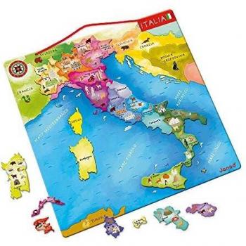Janod - Puzzle Magnétique Italie - Jeu Éducatif en Bois - 20 Pièces - Découverte de la Géographie - Dès 7 ans