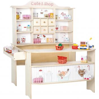 Marchande en Bois Café & Shop - Jouet d'Imitation avec 8 Compartiments