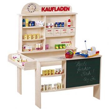 Kaufladen en Bois Naturel avec 6 Tiroirs et Comptoirs - Grande Marchande Unisexe pour Enfants