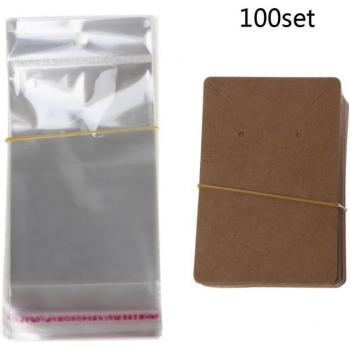 Étiquettes Kraft pour emballage de bijoux avec sacs auto-joint - 100 pièces