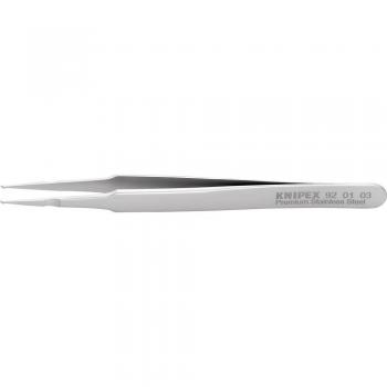 Brucelles Knipex de 120 mm, pointe courbée à 45°, largeur 0,6 mm, acier inoxydable anti‑magnétique et revêtement micro‑rugueux pour une prise impeccable sur composants SMD fins.