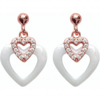 Bijoux Love – Boucles Plaquées Or, Forme Céramique Rose-Blanc