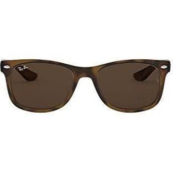 Lunettes de soleil Ray‑Ban Junior New Wayfarer, cadre carré rouge injecté, verres orange miroirs, taille 47 mm, légères et résistantes, parfaites pour les aventures estivales des enfants.
