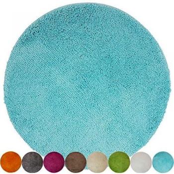 Tapis de salle de bain bleu orage en velours - D. 90 cm - PEGANE
