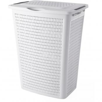 Coffre de Linge Blanc SUNDIS – 50 Litres, Aspect Rotin