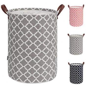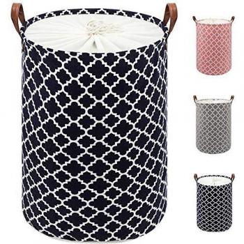 TOTANKI 50L Grand panier à linge avec poignée en cuir durable, corbeille a linge rond à cordon de serrage, panier à linge pliable,