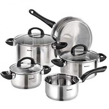 Mia Collection Karcher – Batterie d’ustensiles 5 pièces, inox, verres de couvercle, induction