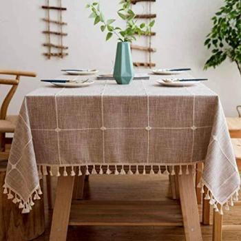Nappe de Table en Coton et Lin avec Pampilles