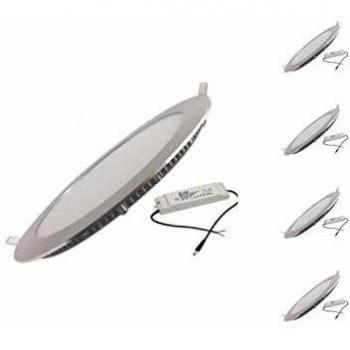 Ensemble de Downlights Dalle LED Extra Plate Ronde ALU 18W - Blanc Chaud 2300K (Lot de 5)