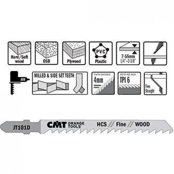 CMT jt101d-5 – 5 lames de scie sauteuse HCS 100 x 4 x 6tpi (Bois/Droit/fin)
