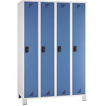 EUROKRAFT Armoires de vestiaire, 850 mm compartiments h x l x p 1800 x 800 x 500 mm, 4 compartiments - corps gris clair, portes bleu brillant