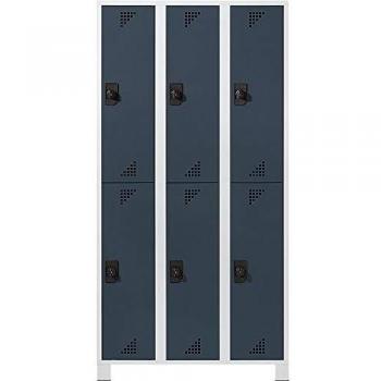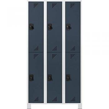 Armoires de vestiaire EUROKRAFT, hauteur des compartiments 850 mm - H x L x P 1800 x 1200 x 500 mm, 6 compartiments - corps gris clair, portes bleu