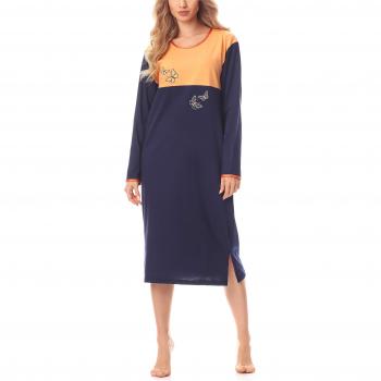 Robe Vêtements d'Intérieur Femme Merry Style MSDR5005 (Bleu Foncé/Orange, L)