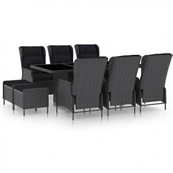 Table et chaises de patio 9 pcs – coussins grise résine tressée