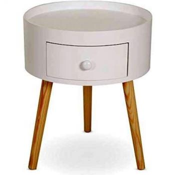 Table de chevet ronde design scandinave HOMCOM - tiroir bicolore chêne clair et blanc