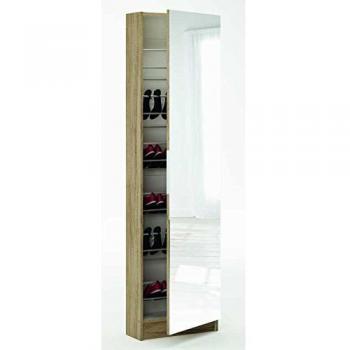 Armoire à chaussures zapatero - 12 paires - chêne et noir - 1 porte avec miroir - 50 x 18 x 200 cm - cba meubles Demeyere