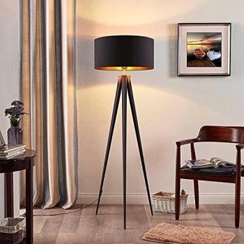 Lindby Lampadaire Tripode 'Mineva' en Noir en Métal e. a. pour Salon et Salle à Manger (1 lampe, à E27) | Lampe à Pied, Lampe de Sol