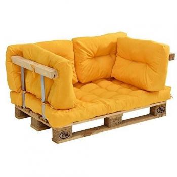 Coussins pour palettes - kit de 5 - Coussin de siège + Coussins de Dossier moutard