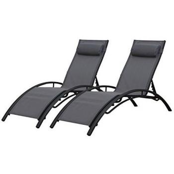 Transats Galapagos en textilène gris - Lot de 2 - aluminium gris