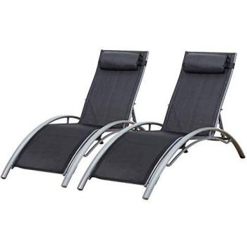 Lot de 2 transats GALAPAGOS - textilène noir - aluminium gris