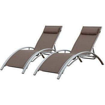 Lot de 2 transats avec structure aluminium blanc et textilène taupe, modèle Galapagos