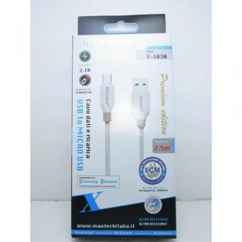 Câble de Charge Micro‑USB 2,1 A Résistance Supérieure 2,5 m F‑S030