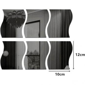 Stickers muraux en miroir 3D vague - 6 pièces pour chambre et salle de bain