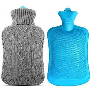 Mture Chauffe-Bouillotte en caoutchouc avec housse tricotée de 2 litres (Gris)
