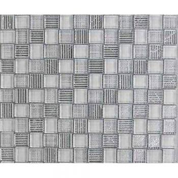 Mosaïque en verre blanc avec inserts argentés 20 x 23 mm