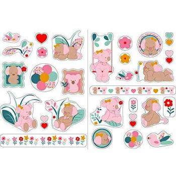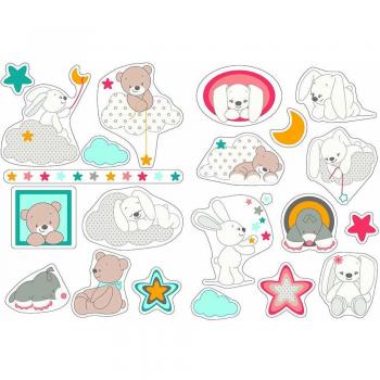 Nattou Stickers Décoratifs pour Chambre d'Enfant Fanny & Oscar, 2 Feuilles, Beige/Blanc/Vert Menthe